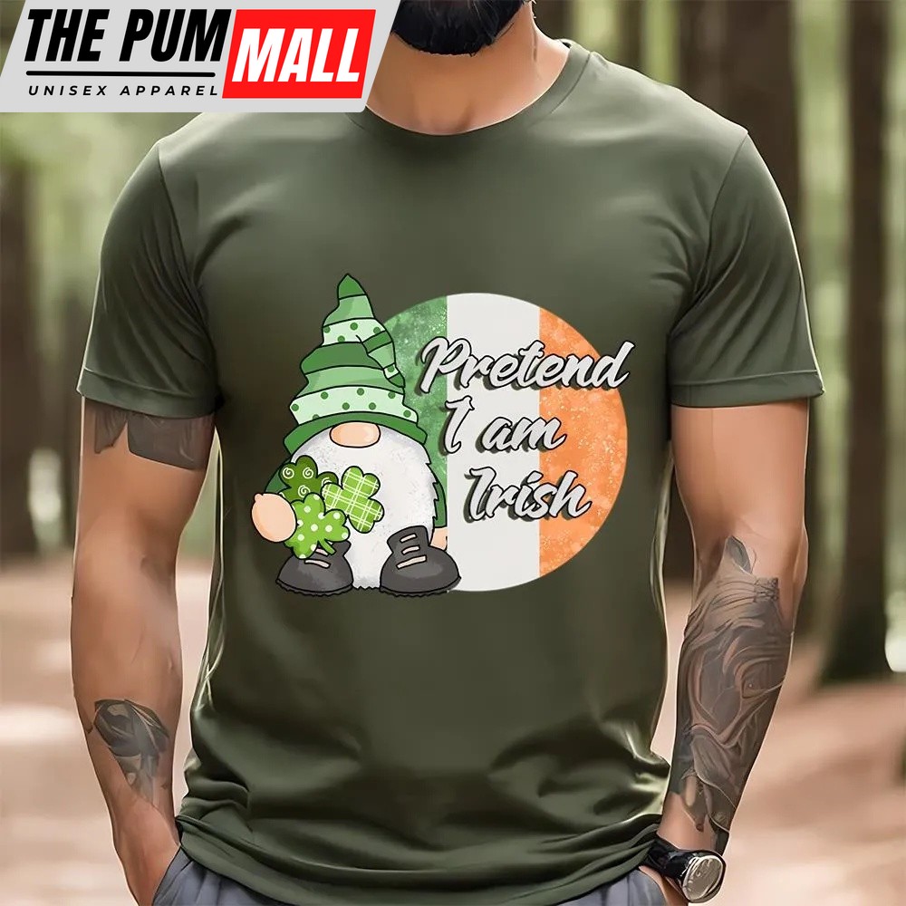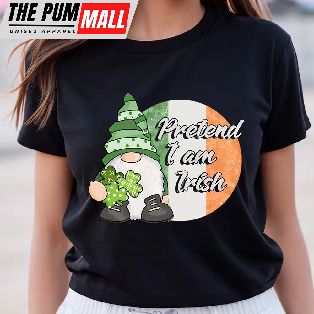 St Patricks Day T Shirt, Pretend I am Irish Funny Gnome St Patricks Day T-Shirt, Funny St Patricks Day Shirts