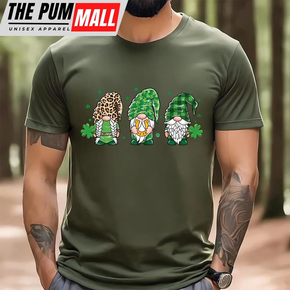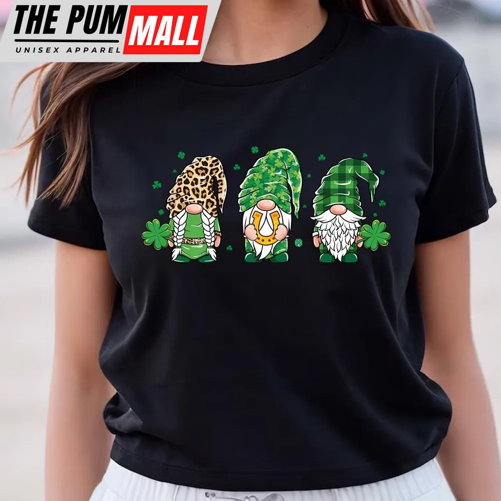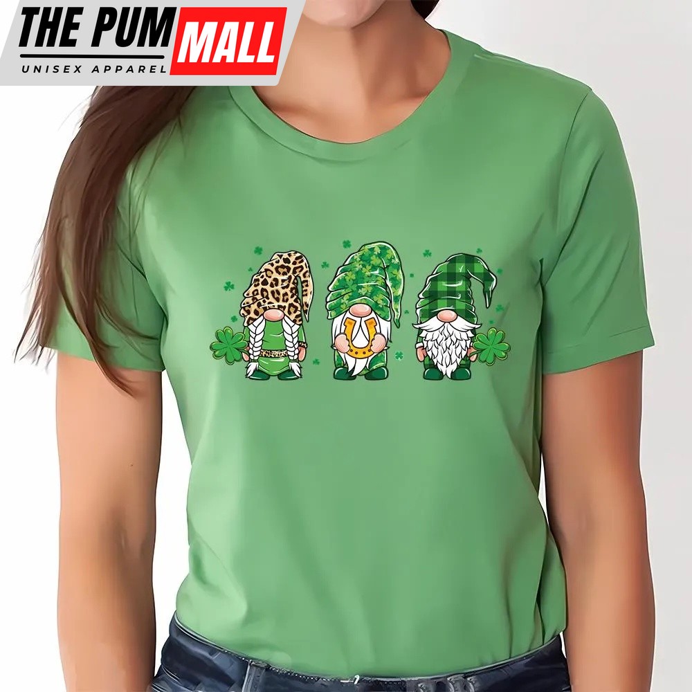 St Patricks Day T Shirt, St Patrick’s Day Gnomes Leopard Plaid T-Shirt, Funny St Patricks Day Shirts