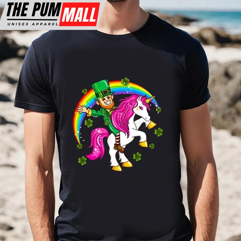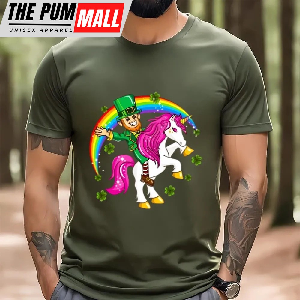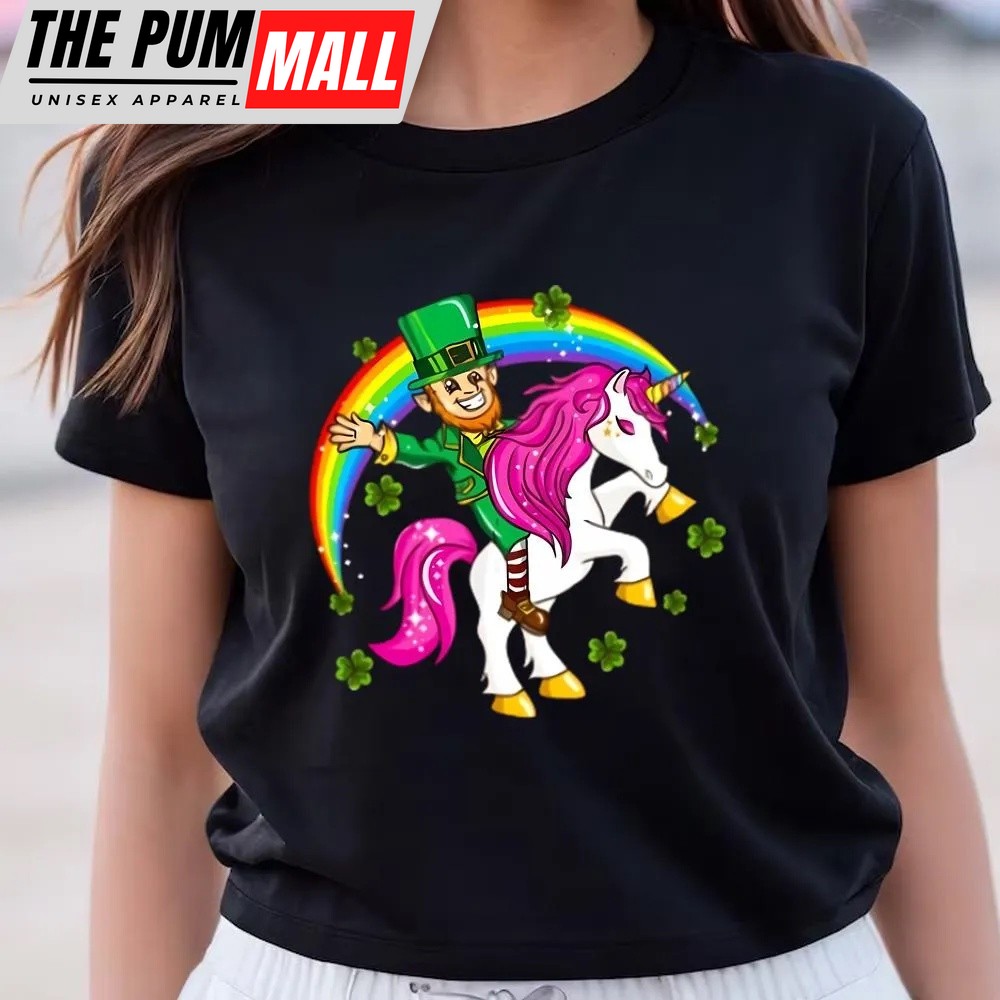 St Patricks Day T Shirt, St Patricks Day Leprechaun Riding Unicorn T-Shirt, Funny St Patricks Day Shirts