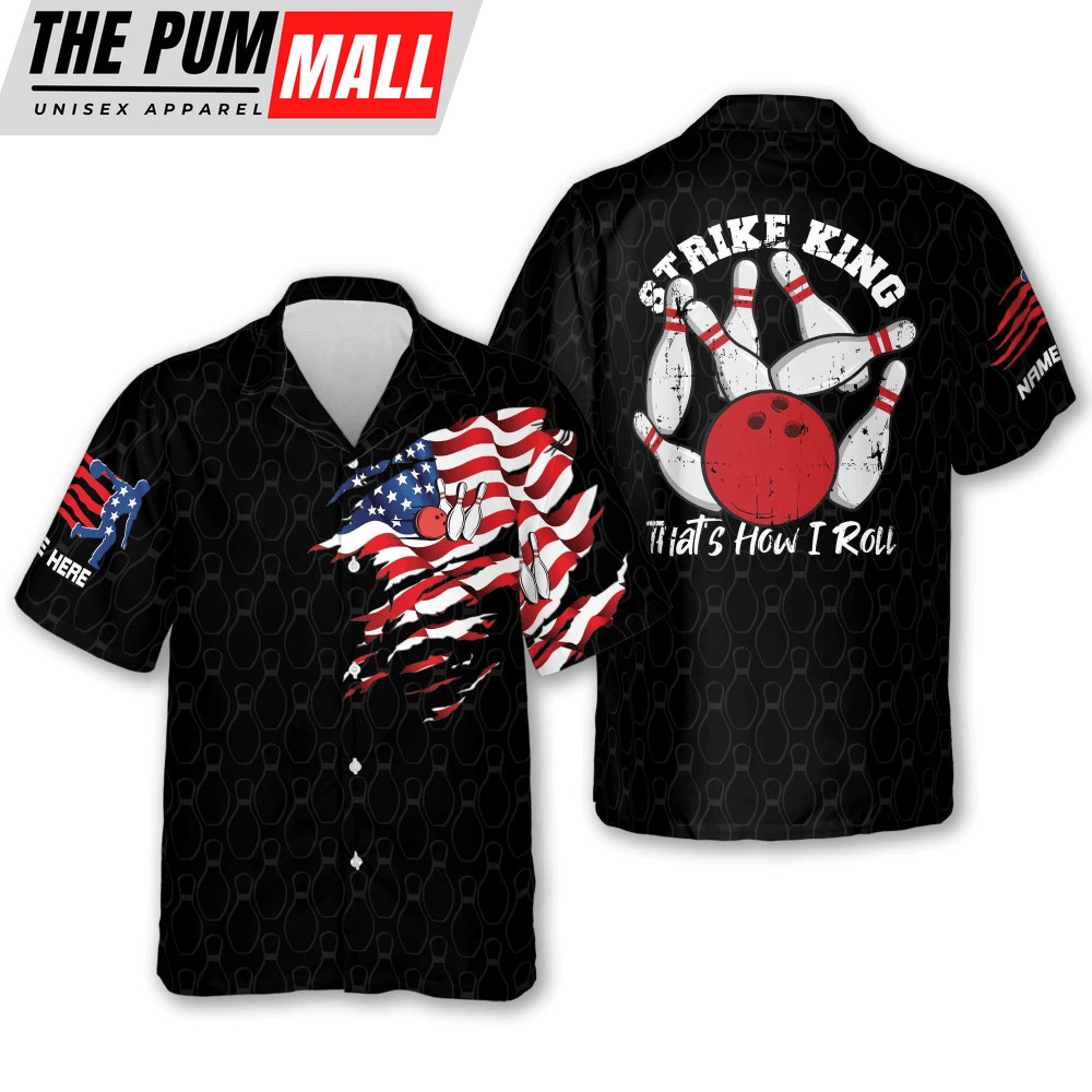 Strike King Thats How I Roll Shirt American Flag Bowling Hawaiian Shirt, Custom name Bowling Hawaiian shirt for men