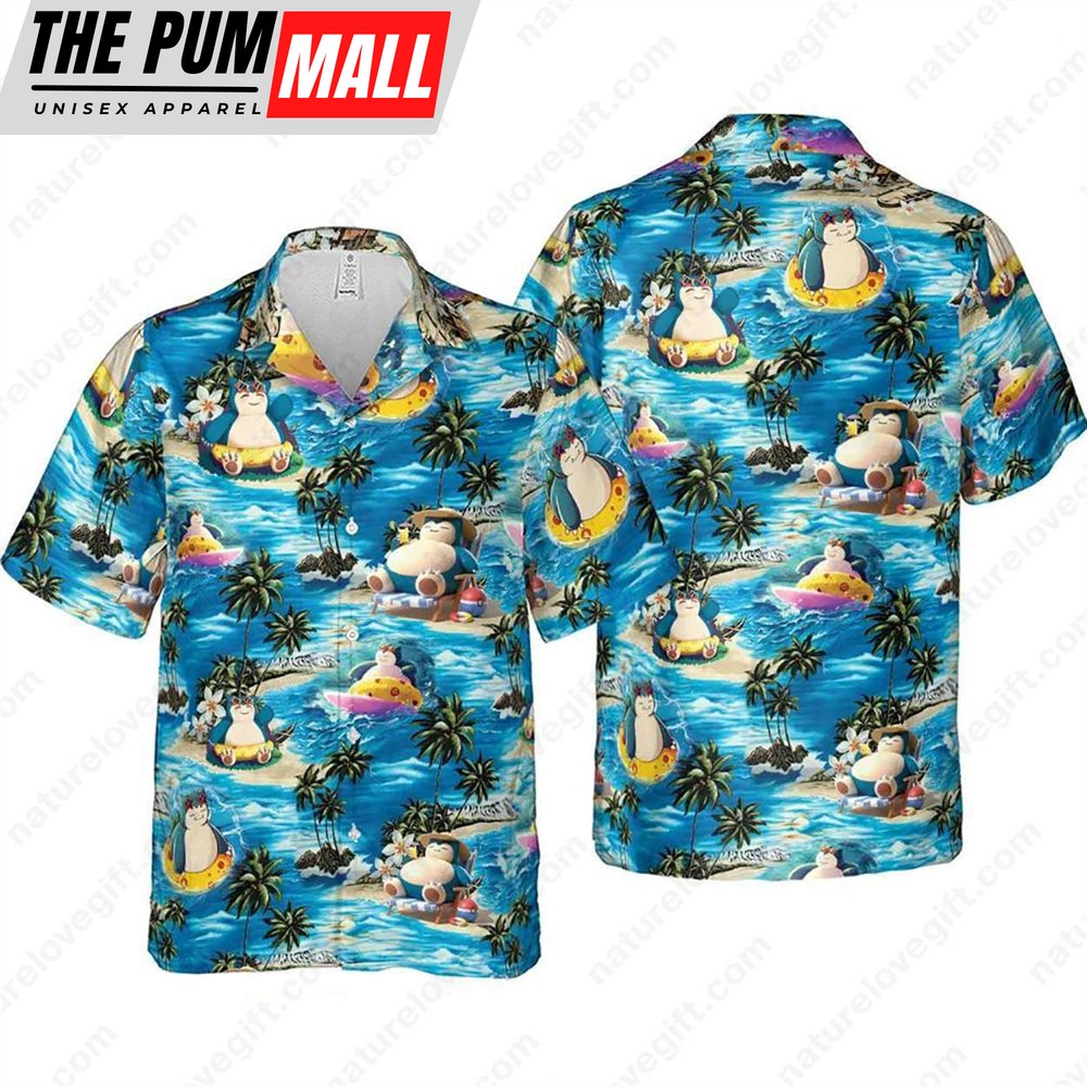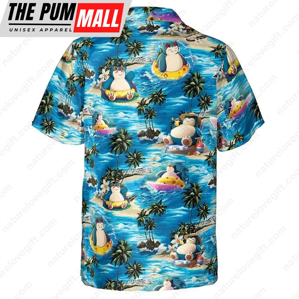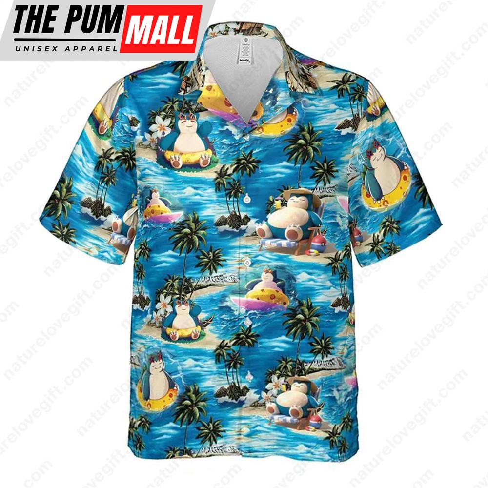 Surfing Pokemon Snorlax On Island Pokemon Hawaiian Shirt
