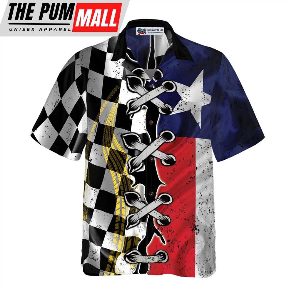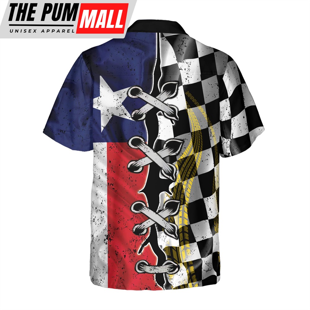 Texas Hawaiian Shirt, Black And White Texas Racing Flag Hawaiian Shirt