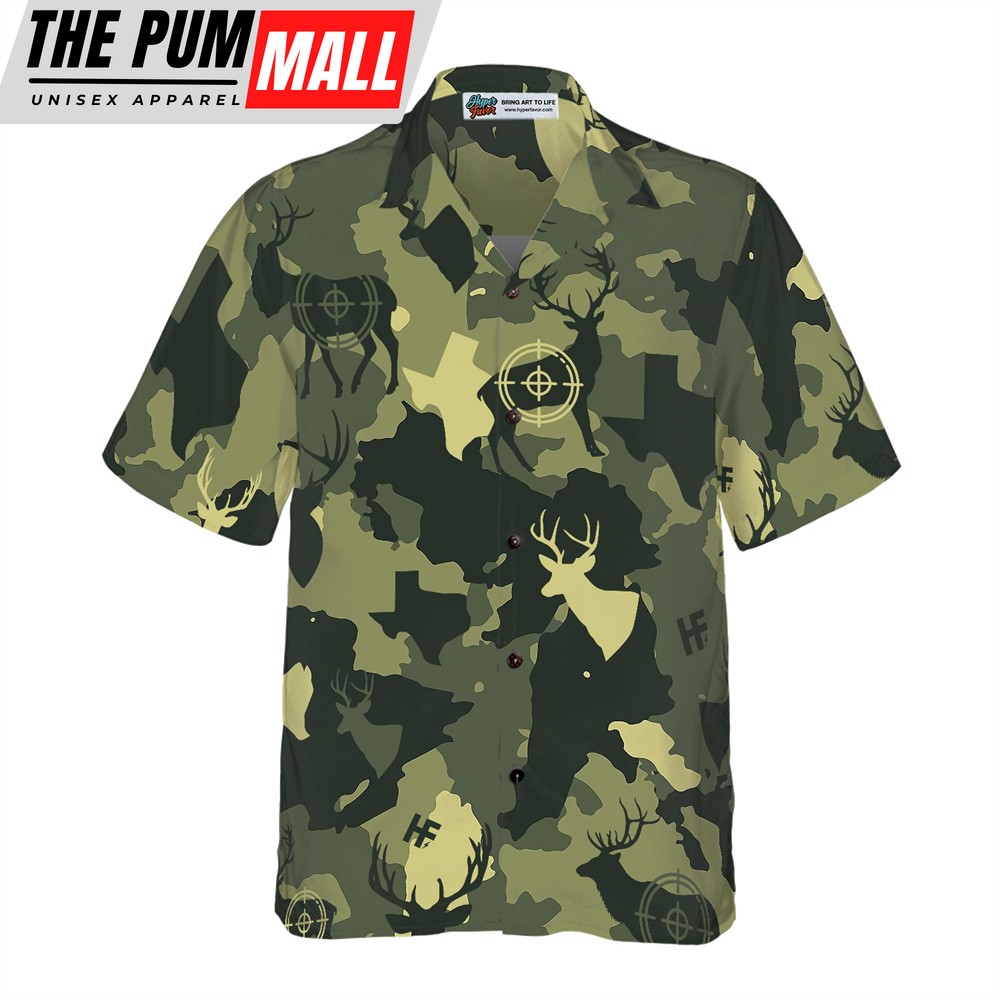 Texas Hawaiian Shirt, Camouflage Deer Texas Gun Hunting Hawaiian Shirt