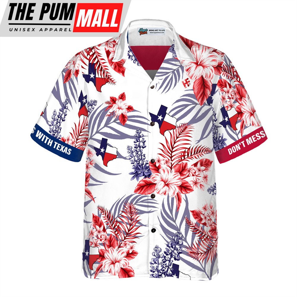 Texas Hawaiian Shirt, Floral Bluebonnet Don’t Mess with Texas Hawaiian Shirt