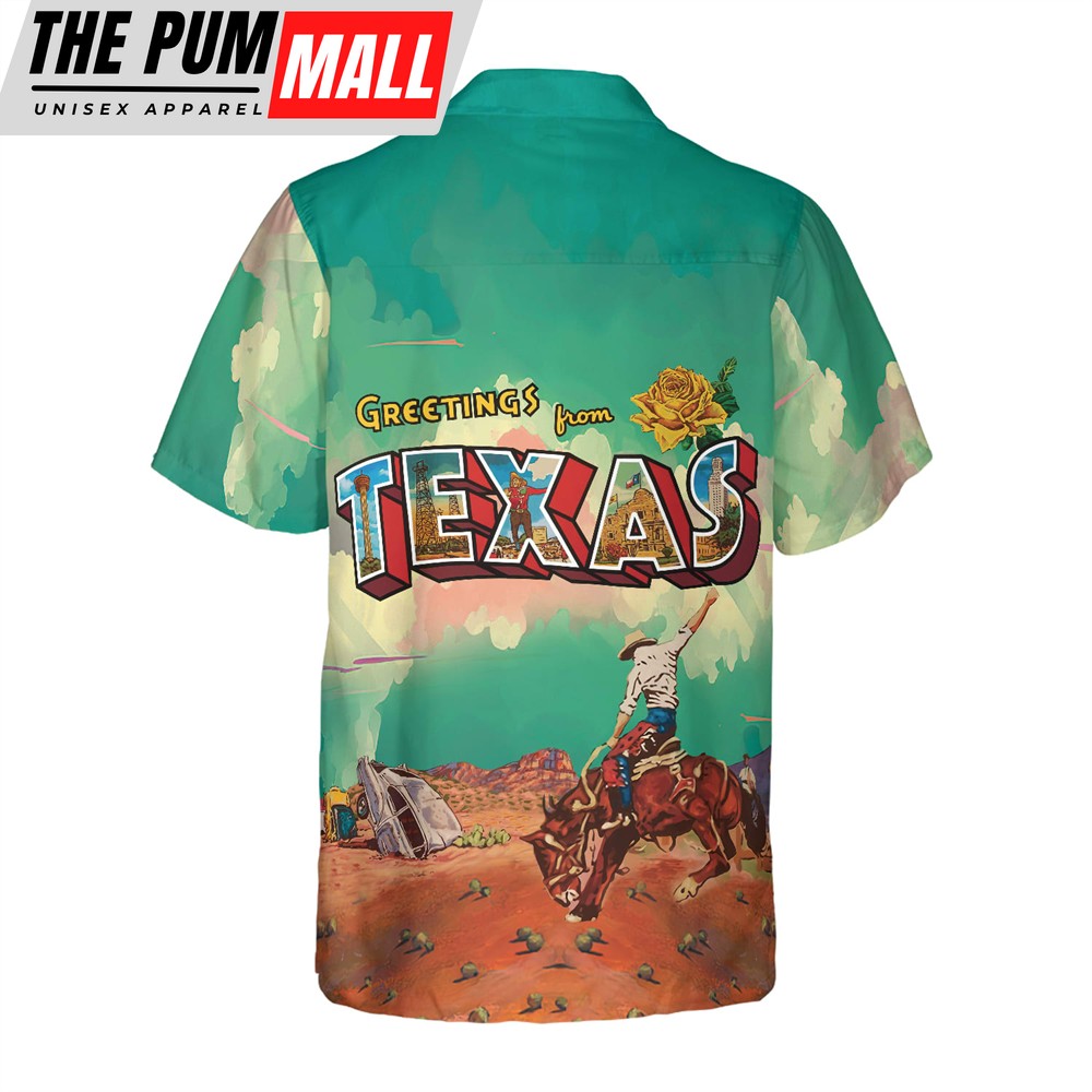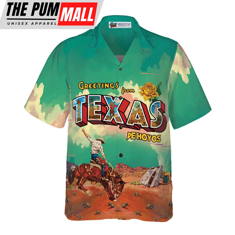 Texas Hawaiian Shirt, Greetings From Texas Custom Hawaiian Shirt, Cowboy Rodeo Texas Western Shirt