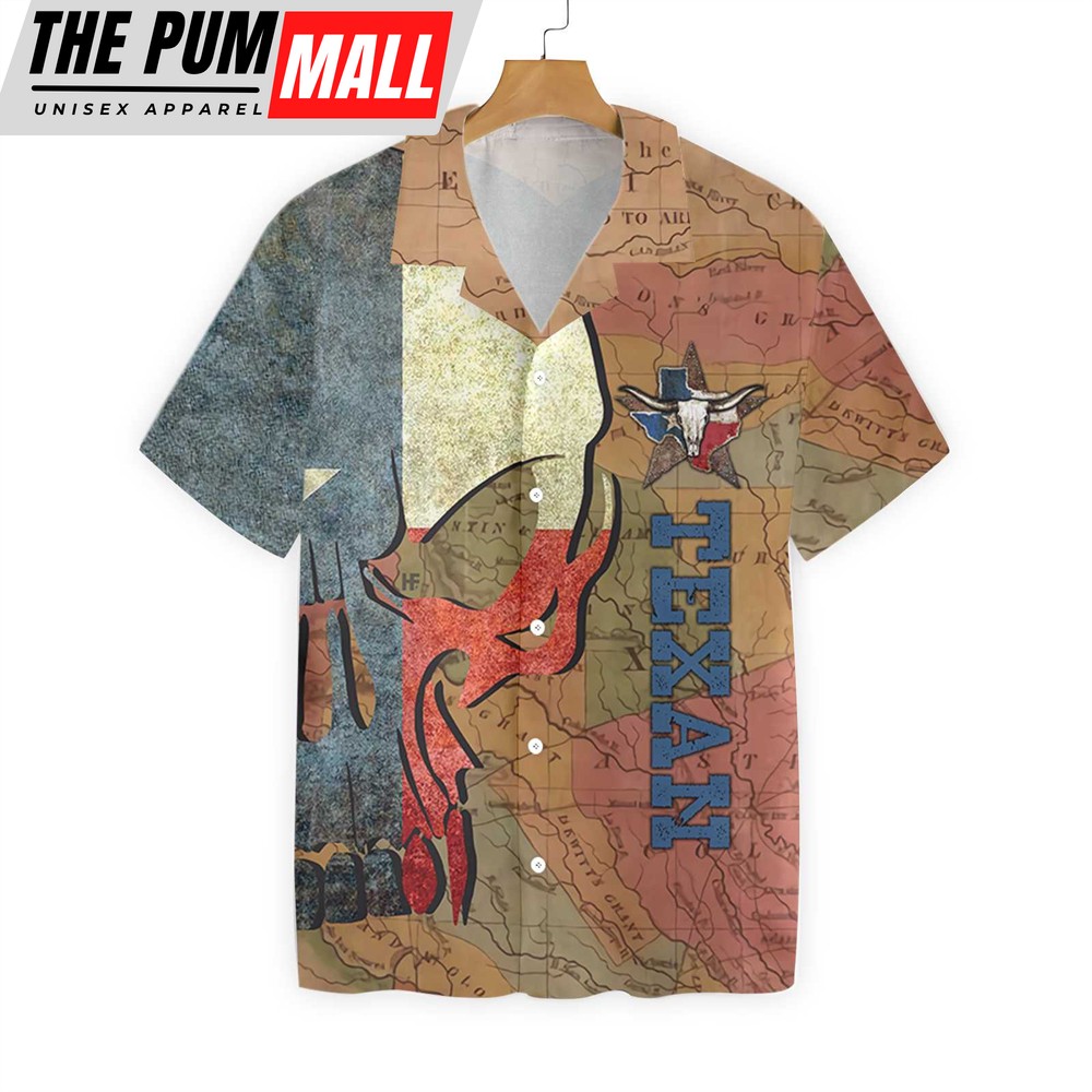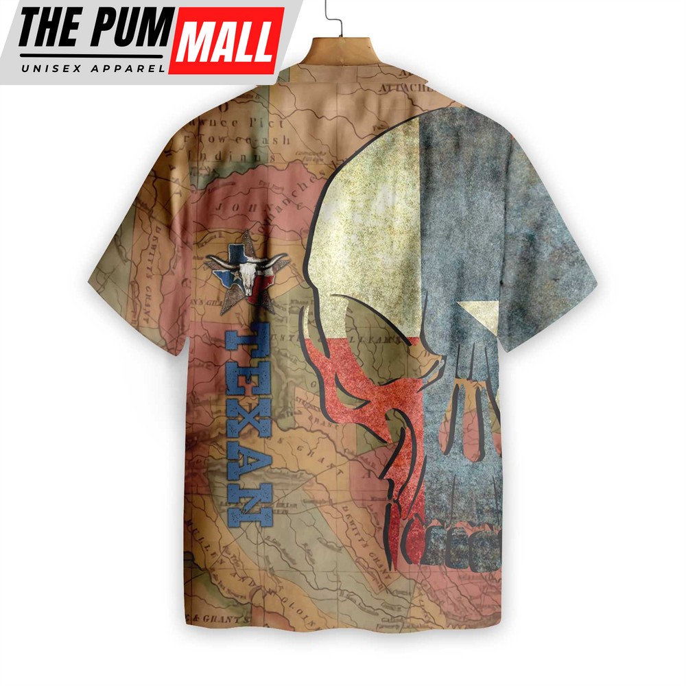 Texas Hawaiian Shirt, Texan And Skull Map And Flag Pattern Texas Hawaiian Shirt