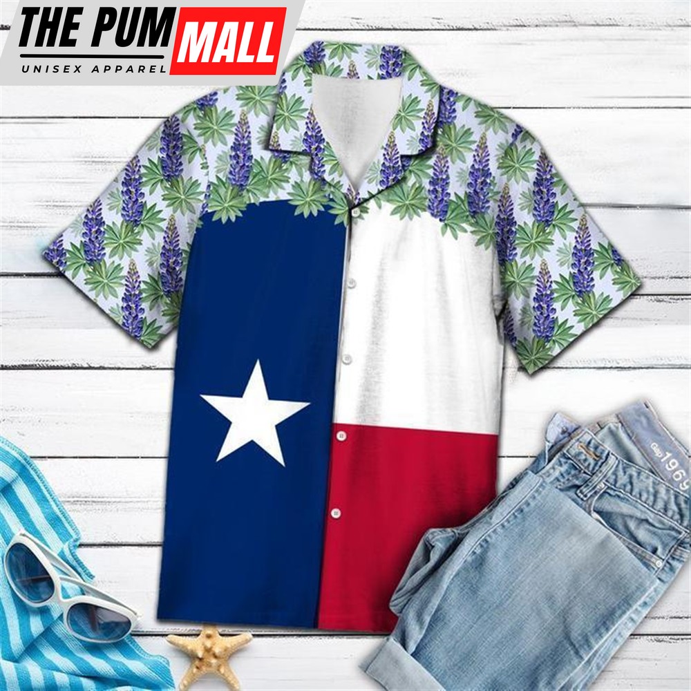 Texas Hawaiian Shirt, Texas Bluebonnet Flag Hawaiian Shirt