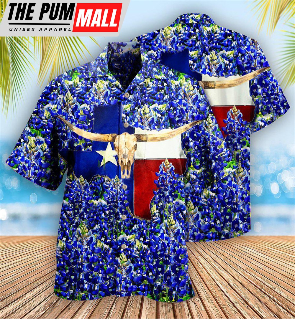 Texas Hawaiian Shirt, Texas Forever Texas Bluebonnet Hawaiian Shirts