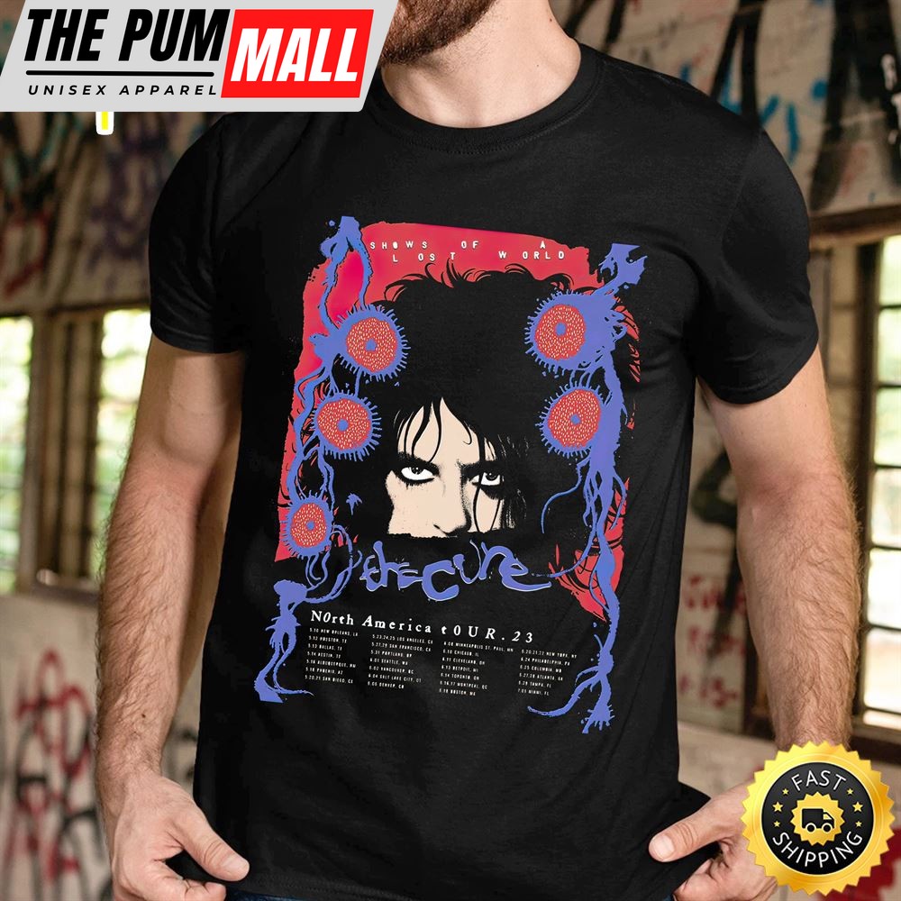 The Cure Shows Of A Lost World Tour 2025 Poster Faded Red – Soft Blue Tshirt