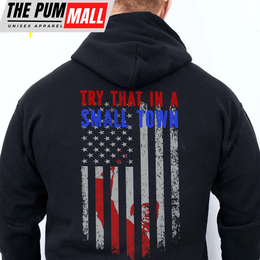 Try That In A Small Town, Trump Fight 2024 Shirt, Republican Shirt, Trump Supporters Backside Shirt Dark