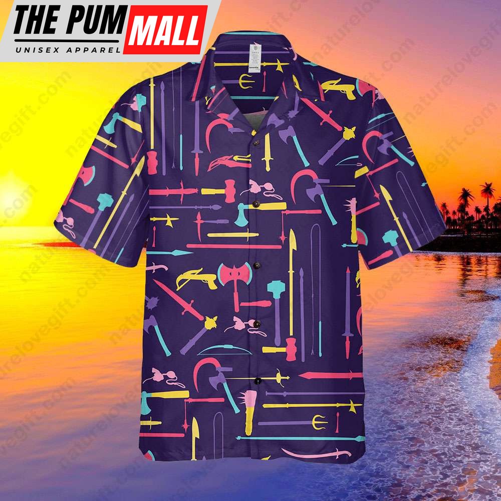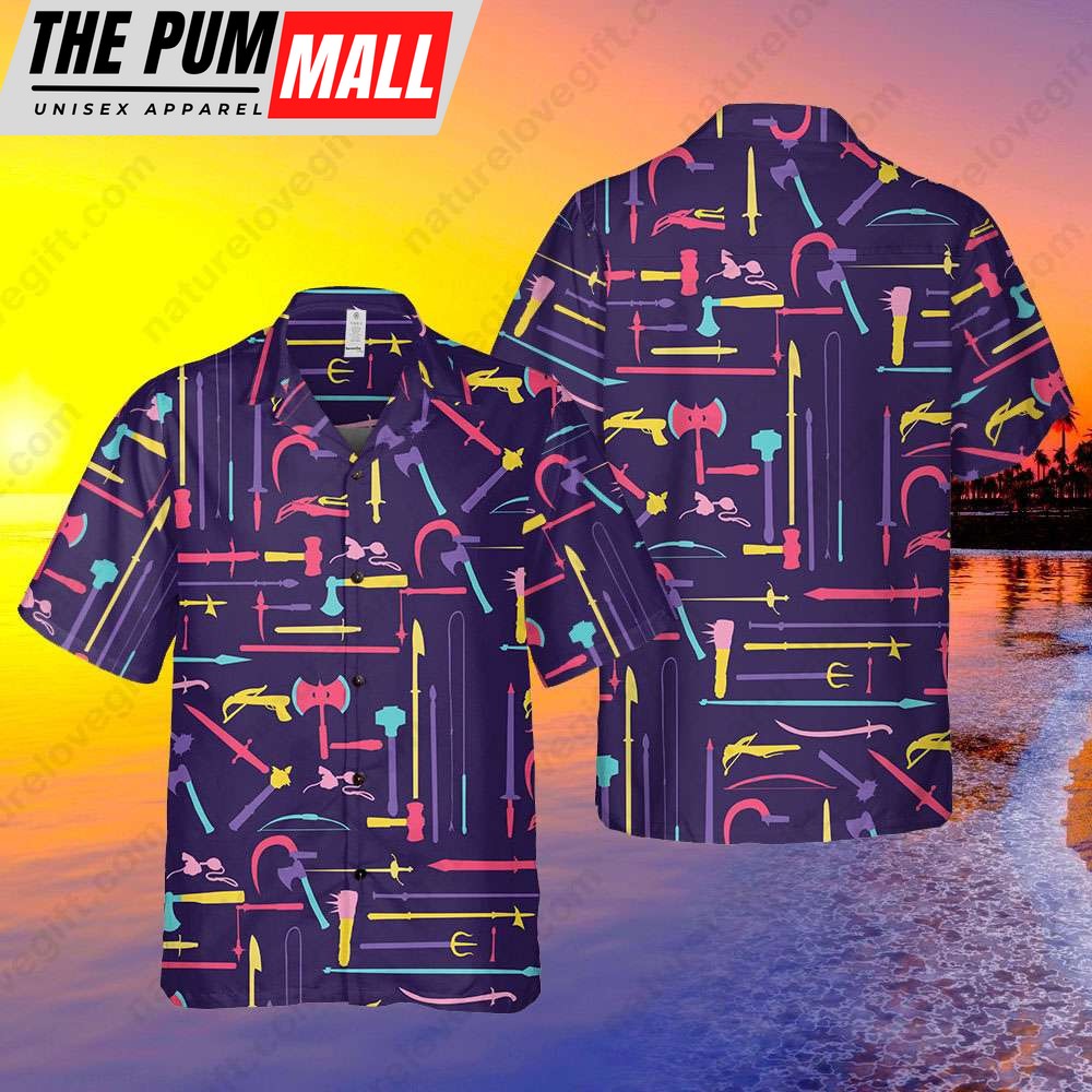 Weapons Button Up Hawaiian Shirt DnD Dungeons and Dragons Gift