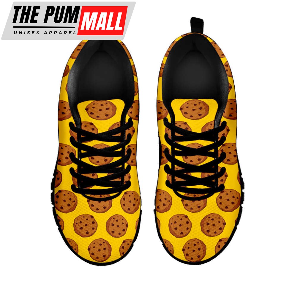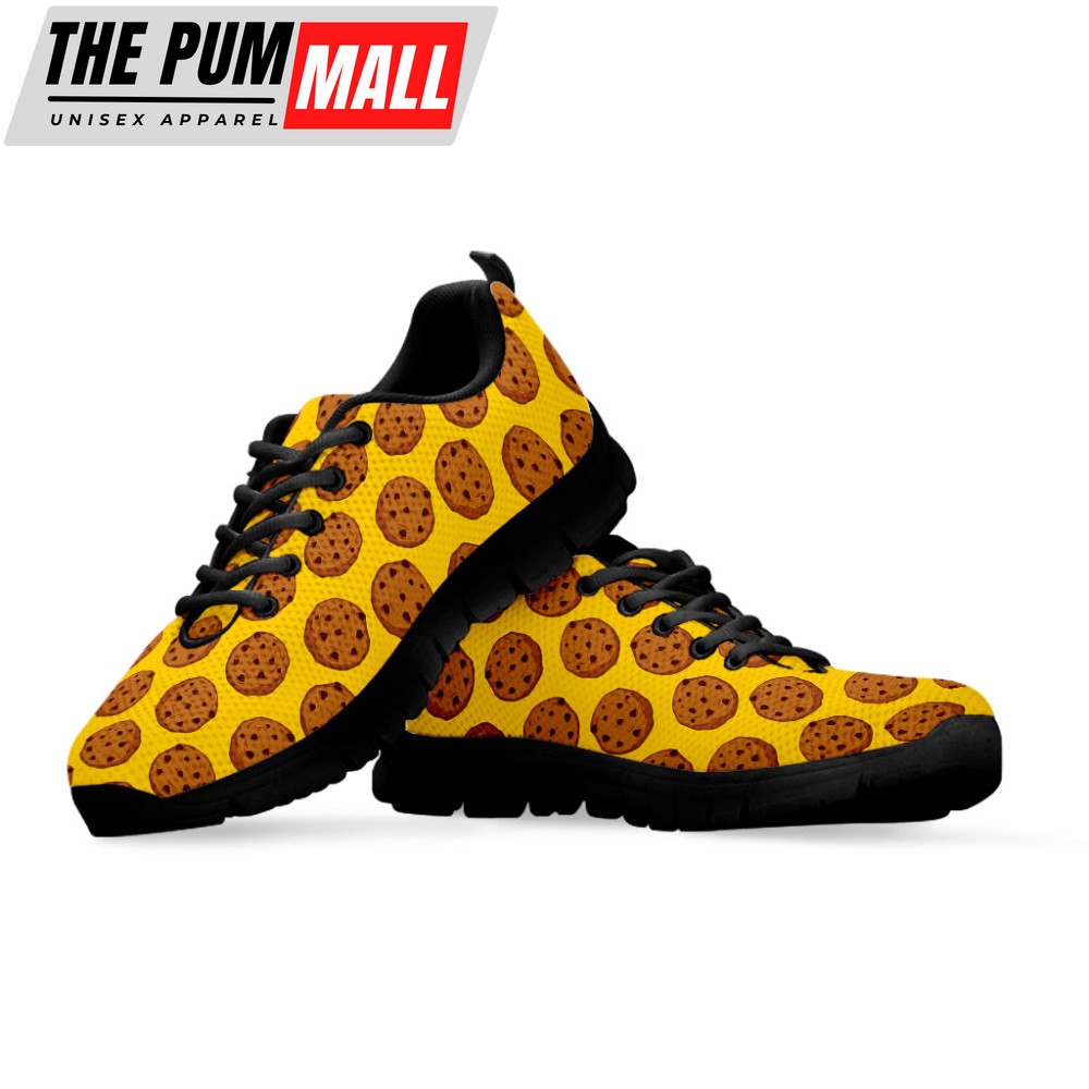 Yellow Cookie Pattern Print Black Running Shoes, Gift For Men And Women