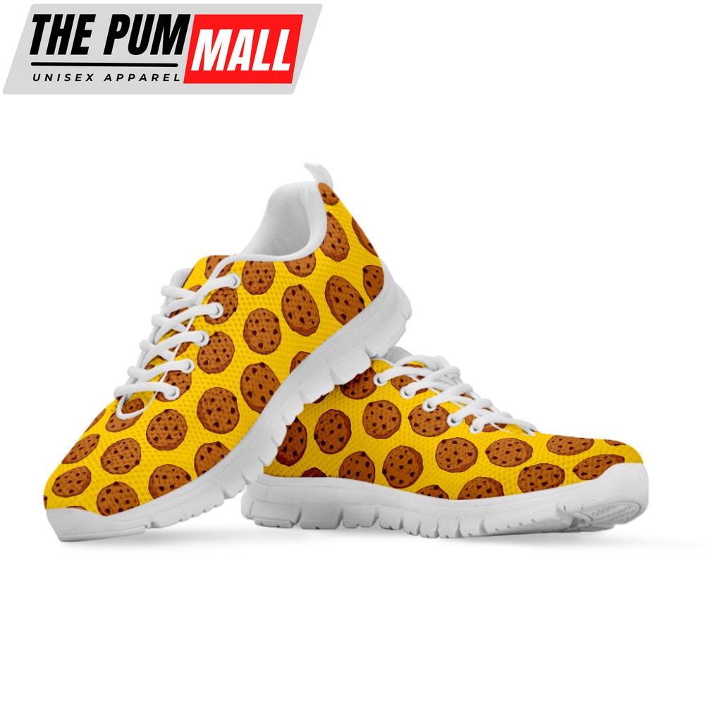 Yellow Cookie Pattern Print White Running Shoes, Gift For Men And Women