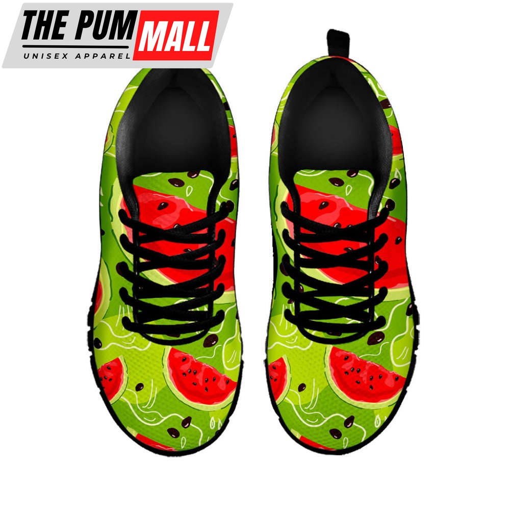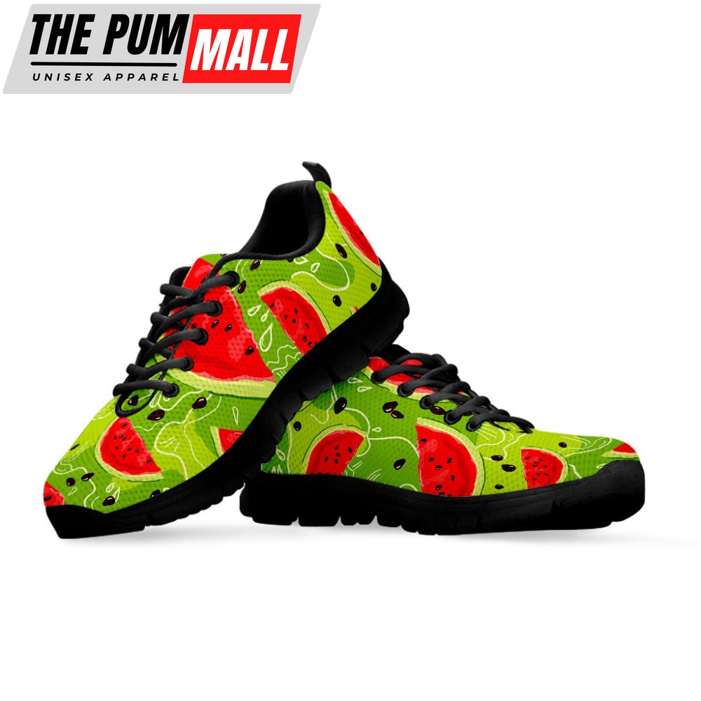 Yummy Watermelon Pieces Pattern Print Black Running Shoes, Gift For Men And Women