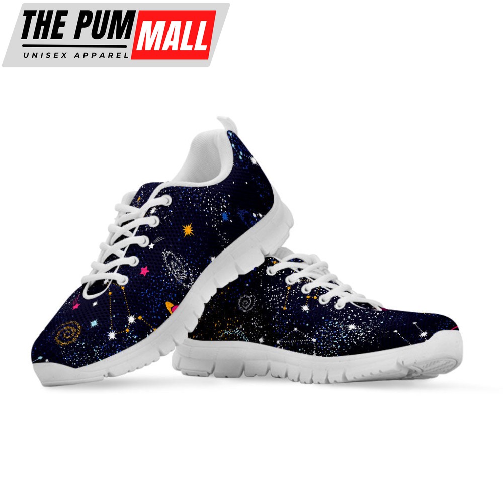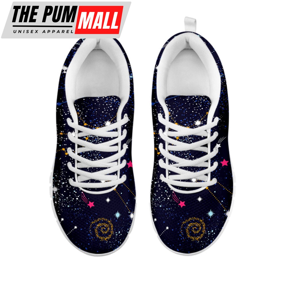 Zodiac Star Signs Galaxy Space Print White Running Shoes, Gift For Men And Women