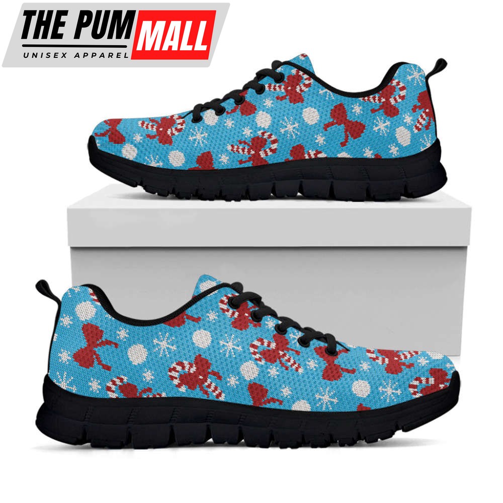 Christmas Party Knitted Pattern Print Black Running Shoes, Gift For Men And Women